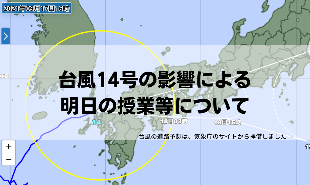 台風14号の接近に伴う明日の授業について